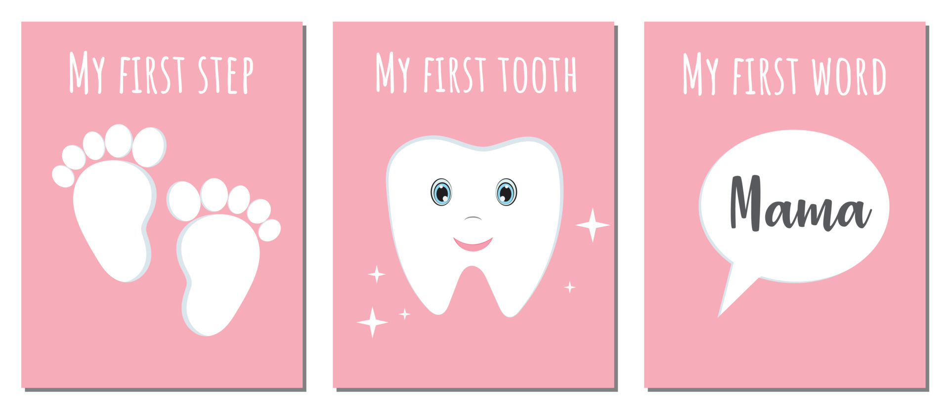 Collection, set of cards or posters about baby first with quotes