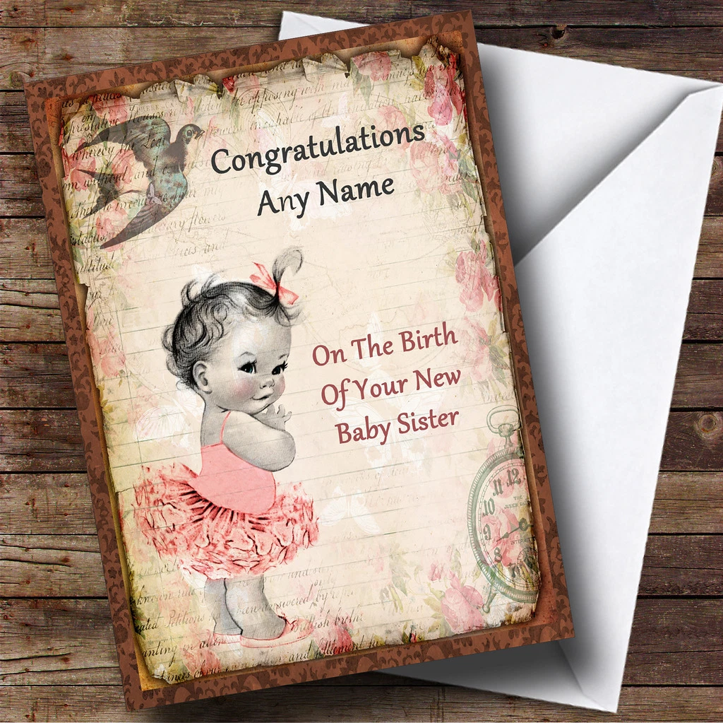 Vintage Baby Girl Sister Personalised New Baby Greetings Card | eBay